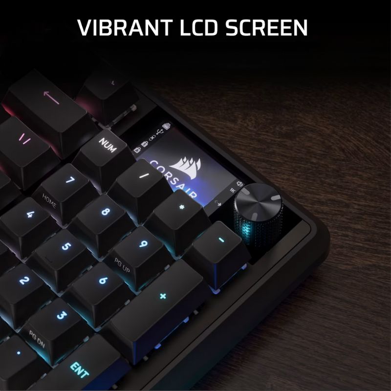 Corsair còn trang bị thêm dàn LED RGB bắt mắt, dải LED cạnh đẹp mắt, phím media chuyên dụng, núm xoay tinh chỉnh âm lượng và ánh sáng—tất cả khiến trải nghiệm sử dụng hàng ngày trở nên tiện và sang hơn rõ rệt. Cùng với đó, phần mềm iCUE tiếp tục là linh hồn của bàn phím Corsair, cho phép bạn tùy biến macro, ánh sáng, hiệu ứng, layout và đồng bộ với toàn hệ sinh thái Corsair.