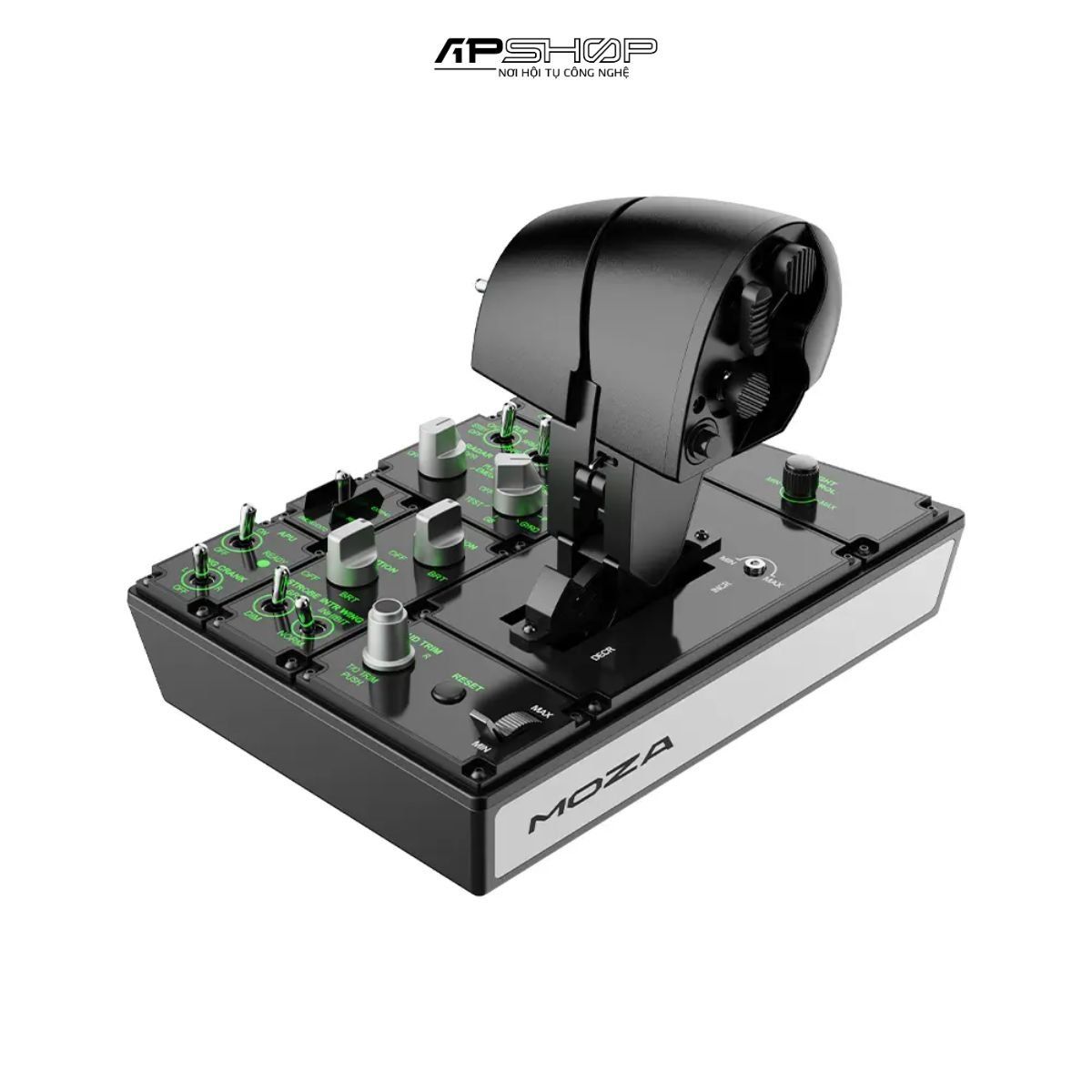 MOZA MTP Throttle mang đến bố cục điều khiển sống động và chân thực, giúp người chơi đắm chìm trọn vẹn trong trải nghiệm mô phỏng bay I apshop.vn