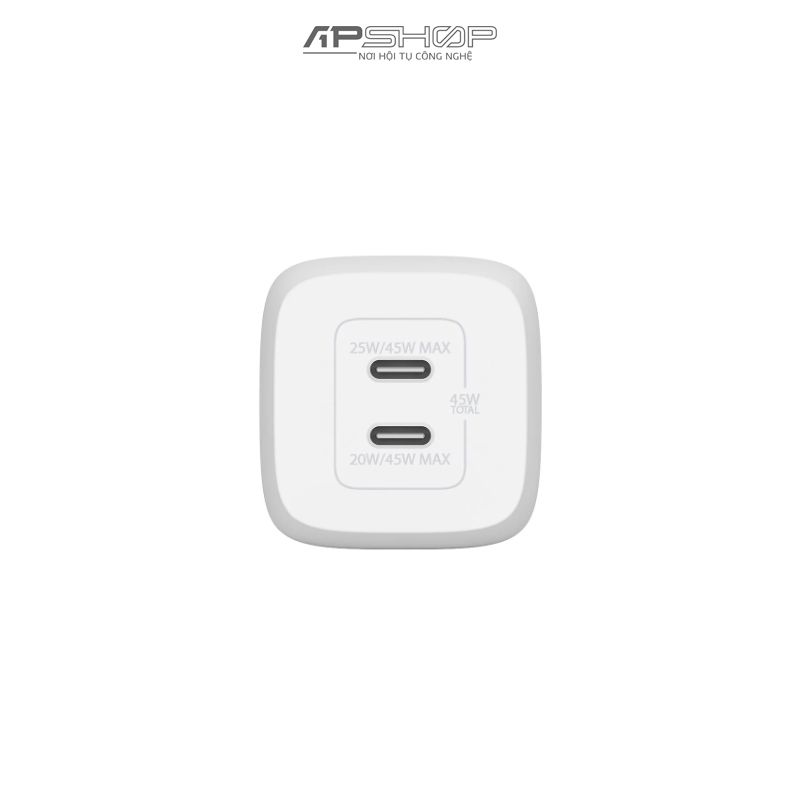 Củ sạc nhanh Belkin 45W, 2 cổng USB C, PD 3.0 PPS GaN | Chính hãng