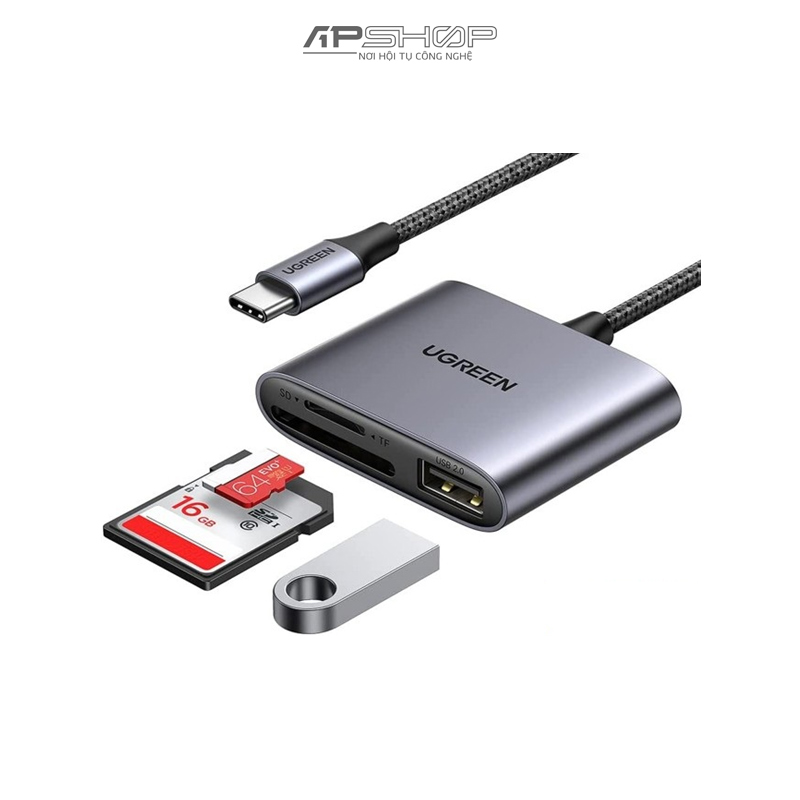 Đầu đọc thẻ nhớ UGREEN USB-C to SD/TF + USB 2.0 Memory Card Reader CM387