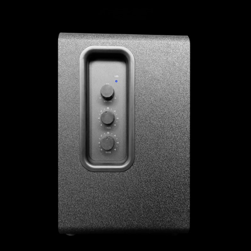 KUMPEL còn hỗ trợ kết nối đa dạng: Bluetooth 5.0, cổng 3.5mm AUX, RCA, và Optical Digital—tạo điều kiện kết nối linh hoạt với điện thoại, máy tính, TV, máy chơi game. Bảng điều khiển bên hông cho phép tùy chỉnh bass/treble và chọn nguồn phát, đồng thời có LED báo hiệu đầu vào tiện dụng.