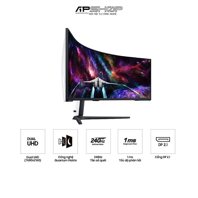 Samsung Odyssey Neo G9 G95NC là màn hình gaming tiên tiến với thiết kế cong 1000R mang đến trải nghiệm game chân thật nhất I apshop.vn