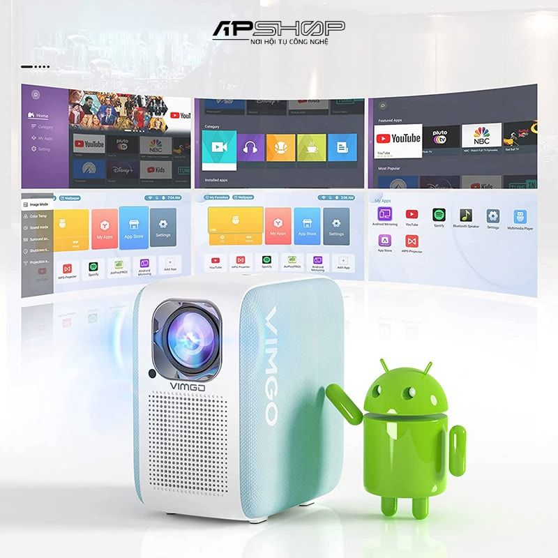 Hệ điều hành Android 9.0: Tiếp cận kho ứng dụng khổng lồ trên Google Play, bạn có thể thoải mái xem phim, nghe nhạc, chơi game trực tiếp trên máy chiếu.