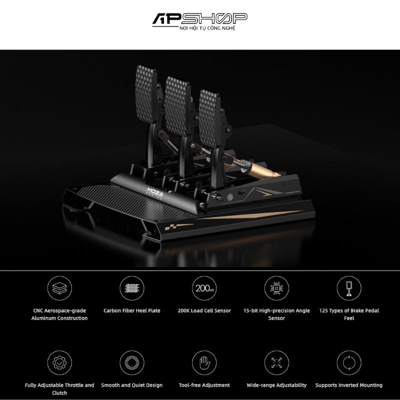 Hệ thống phanh được trang bị cảm biến áp lực 200kg, giúp mô phỏng lực phanh gần như hoàn toàn với các xe đua thực tế I apshop.vn