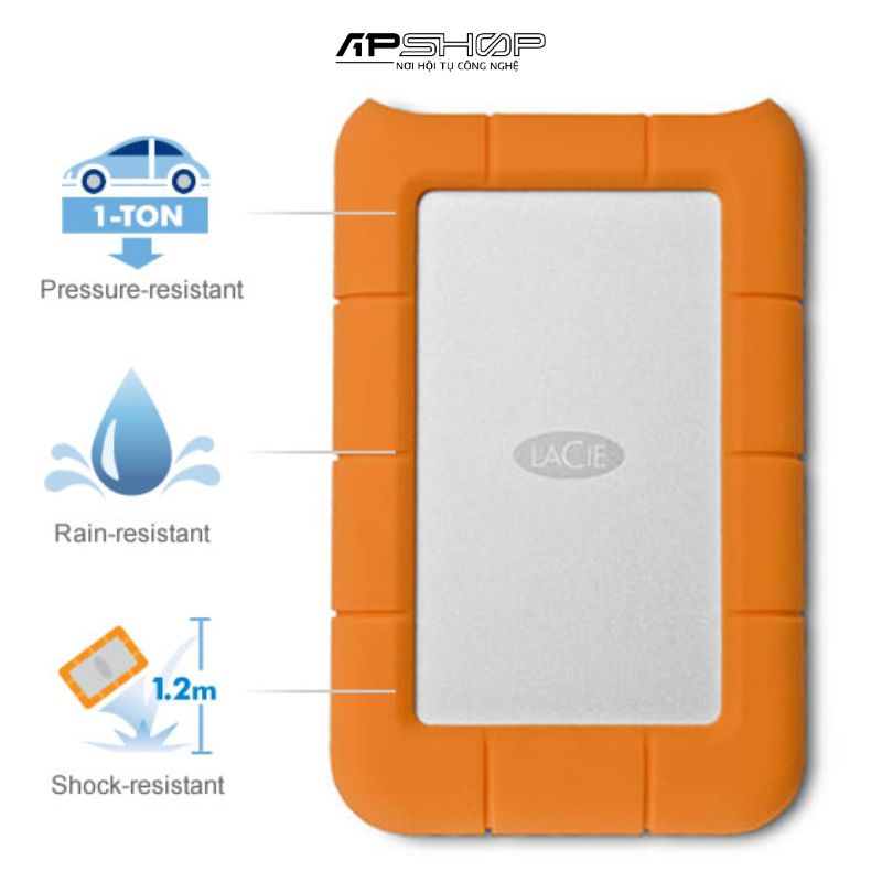 | Tính năng bổ sung | Chống sốc, chống nước (chịu mưa), chống bụi, phần mềm LaCie Toolkit, bảo vệ bằng mật khẩu |