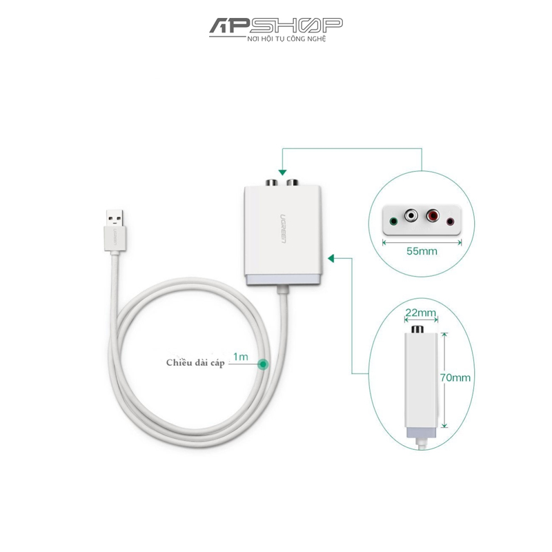 Cáp chuyển USB to RCA hỗ trợ Mic + Headphone chính hãng Ugreen 30521 là thiết bị cao cấp giúp bạn có thể chuyển đổi âm thanh từ cổng usb trên máy tính bàn, laptop... với thiết bị xuất âm thanh như amply, loa, tai nghe.. chất lượng âm thanh tuyệt vời hay như ở rạp hát.