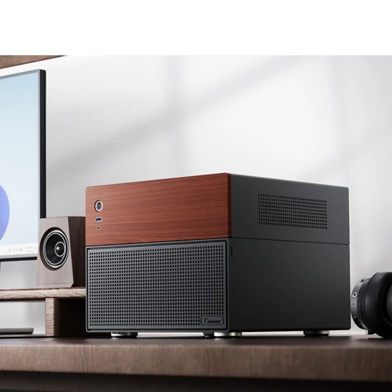 Khung máy NAS N4 sử dụng thiết kế cấu trúc khoang trên và dưới, khoang bo mạch chủ hỗ trợ bo mạch chủ MATX và các card mở rộng Low-Profile, đồng thời hỗ trợ tản nhiệt kiểu ép xuống, các lỗ thông gió ở mặt trước được trang trí bằng gỗ óc chó Bắc Mỹ, cung cấp giải pháp tản nhiệt tốt đồng thời nâng cao tính thẩm mỹ của sản phẩm, khoang ổ cứng hỗ trợ lắp đặt ổ cứng 8 đĩa, giao diện Type-C phía trước cho phép truyền dữ liệu tốc độ cao.